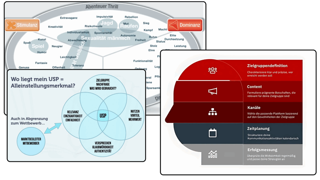 Zugeschnitten auf den Persönlichkeitstyp Deines Zielkunden wird eine Kommunikationsstrategie entwickelt, die ihn emotional erreicht und sein limbisches System aktiviert.